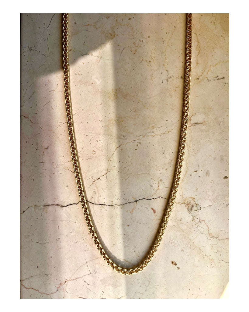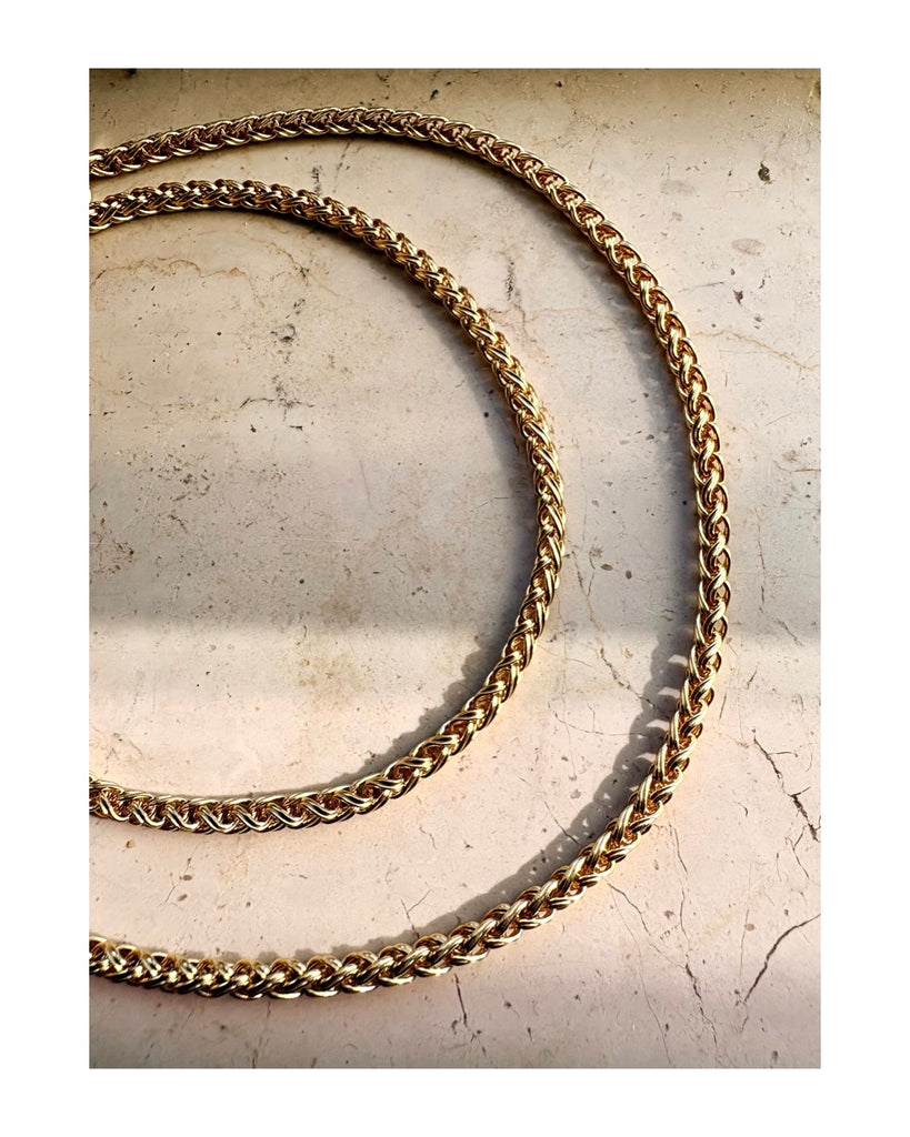 Collana placcata oro 18 kit in maglia intrecciata. Lunghezza 86 cm.
